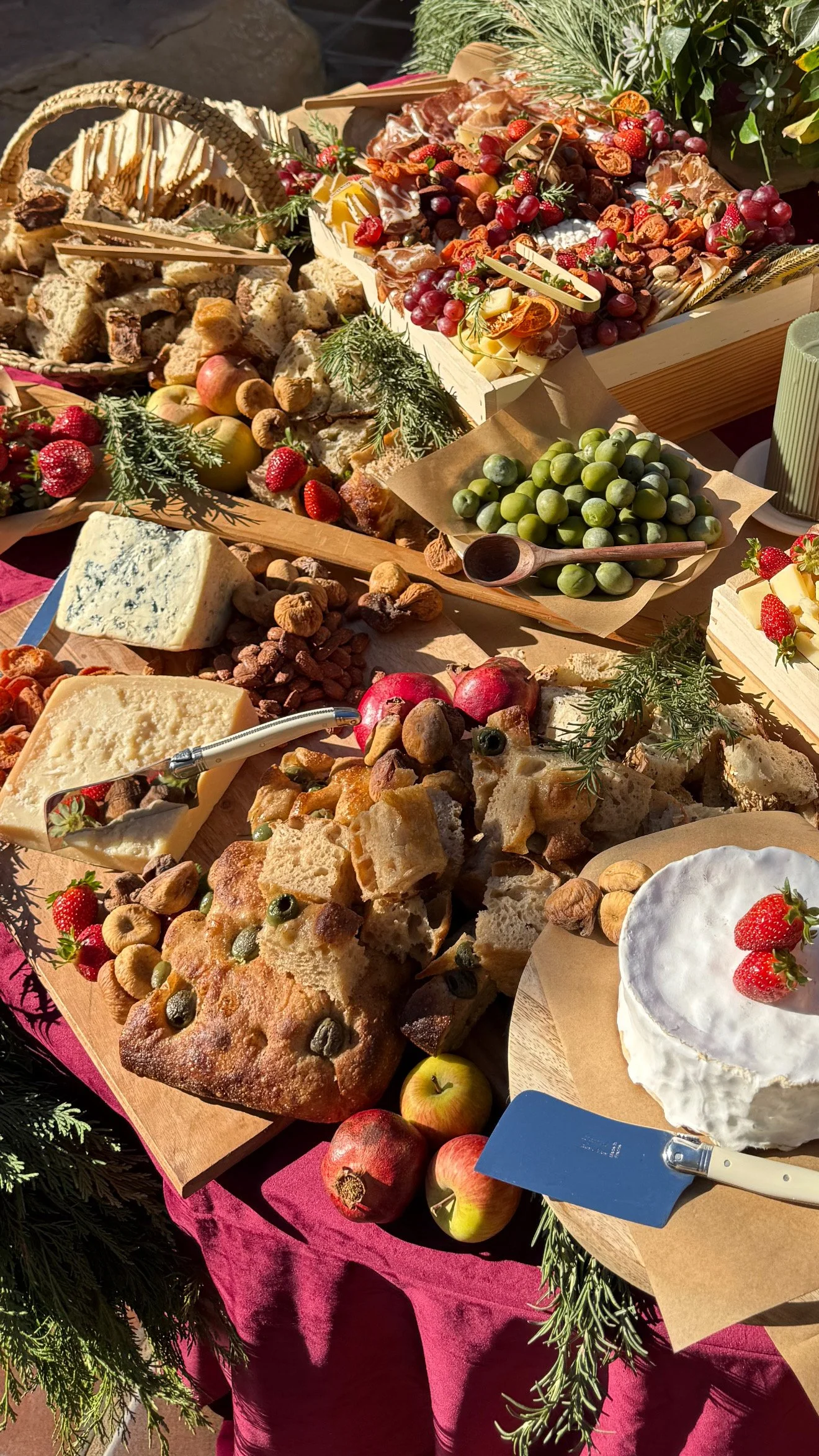 Product is shopped at the Santa Barbara farmers market and local cheese shop . There is a method to Britt’s farmers market picking. You will find Petite Hosting grazing the farmers market Tuesday and Saturdays. Then a pop-in at the local cheese shop to select artisan cheeses for your board. Flowers and branches with fruit for grazing tables are shopped at Mayesh. Boards are artfully designed with the best product.